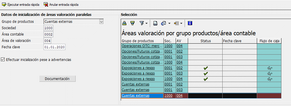 - Inicialización área de valoración paralela (Transacción: TPM_INITIALIZE)