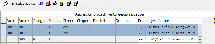 SAP Financial Supply Chain Management – Treasury and Risk Management – Transaction Manager – Parametrizaciones generales – Contabilidad financiera – Parametrizaciones para la gestión de posiciones – Asignar procedimiento gestión pos.