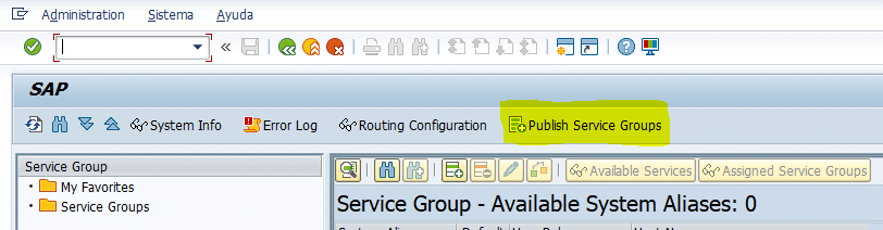 - Seleccionar “publish service groups” y añadir LOCAL en system alias.