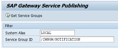 - En el apartado Service Group ID especificaremos: /IWNGW/NOTIFICATION y luego presionaremos el boton ‘Get Service Groups’.