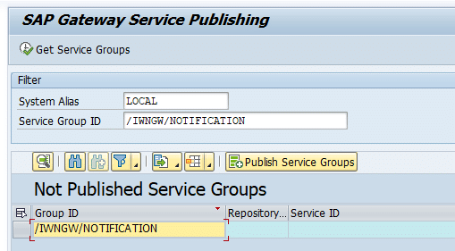 Error Gateway Error - Service Group /IWNGW/NOTIFICATION not published.
